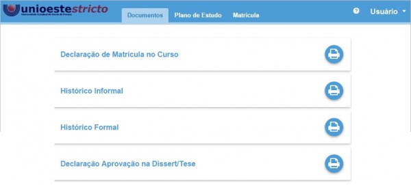 Os documentos disponíveis nesta tela (Figura 2), podem ser emitidos e impressos pelos alunos, bastando clicar no botão “Gerar”.