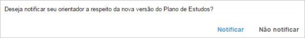 Na sequência, o sistema perguntará se deseja notificar o orientador a respeito da nova versão do plano de estudos (Figura 6), caso afirmativo, o sistema dispara um e-mail avisando o orientador.