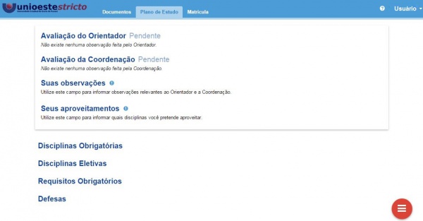 Para que um plano de estudos se torne válido e vigente, deve ser aprovado tanto pelo Orientador quanto pela Coordenação.