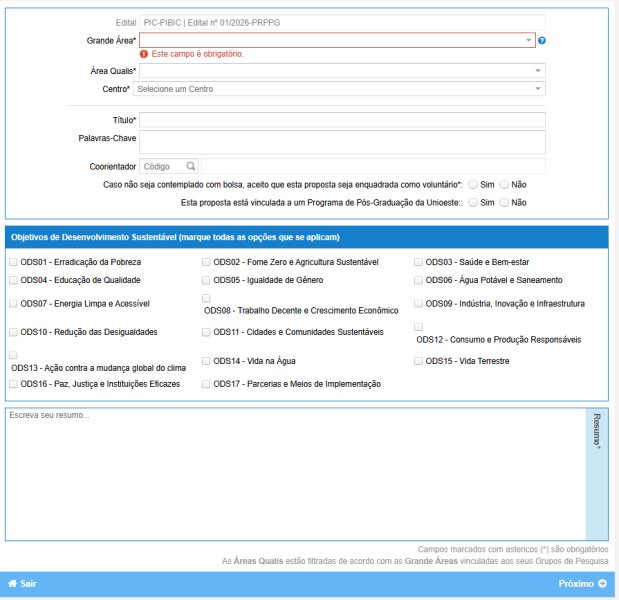 Inscrição de proposta no SGPIC