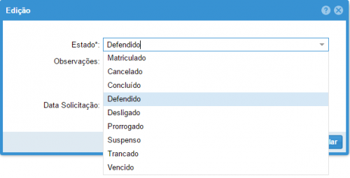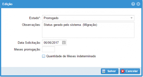 Preencha corretamente os campos de "Observações"; "Data de Solicitação." e os "Meses de Prorrogação". (Figura 6)