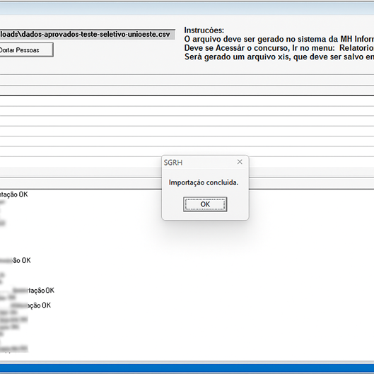 Importação de DADOS PESSOAIS de CANDIDATOS APROVADOS EM PROCESSOS SELETIVOS para o sistema SGRH