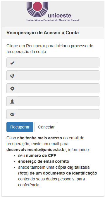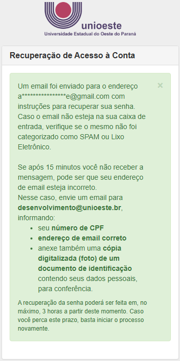 - Caso o cpf/email existir na base de dados da Unioeste