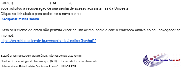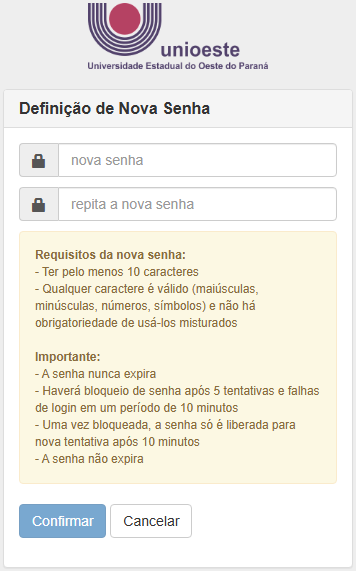 Ao fim do processo você será capaz de acessar os sistemas com a nova senha no endereço http://www.unioeste.br/sistemas/