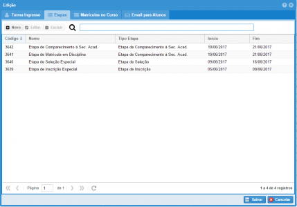 Para cada novo processo de abertura de edital para seleção de alunos, será uma nova Turma de Ingresso cadastrada no sistema.
