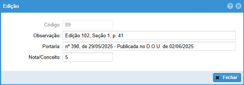 Caso o usuário selecione uma portaria com duplo clique, ele abrirá uma janela com as informações daquela portaria da lista. | |||