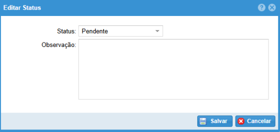 Para incluir ou editar um Status, basta clicar no botão Novo ou selecionar um pré-existente com duplo clique, ambas as ações abrirão a seguinte tela de edição onde o usuário poderá incluir as informações do Status.