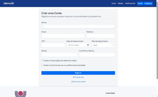 - Para cadastrar o Usuário Responsável do Laboratório, é necessário ter acesso à página de Administração do LabMulti.