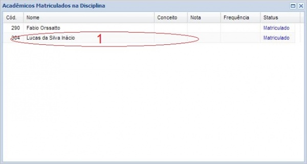 1: Selecione uma Disciplina para lançar notas e frequência.