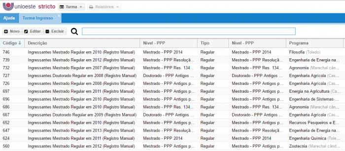 Os Acadêmicos são vinculados a uma Turma de Ingresso (ano que entraram no Programa).