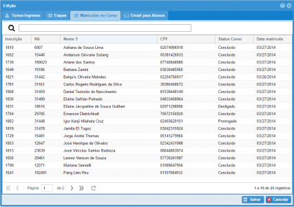 -Na aba aberta selecione: Matriculas no Curso; Estarão listados os alunos Matriculados na Turma.(Figura3)
