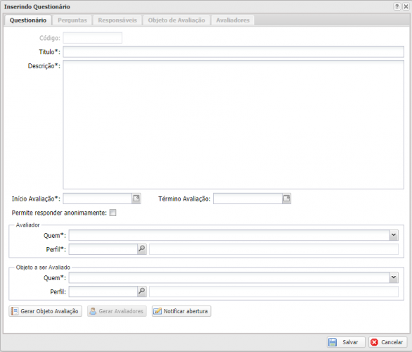 - Ao clicar em "Continuar", abrirá nova tela para preenchimento da avaliação
