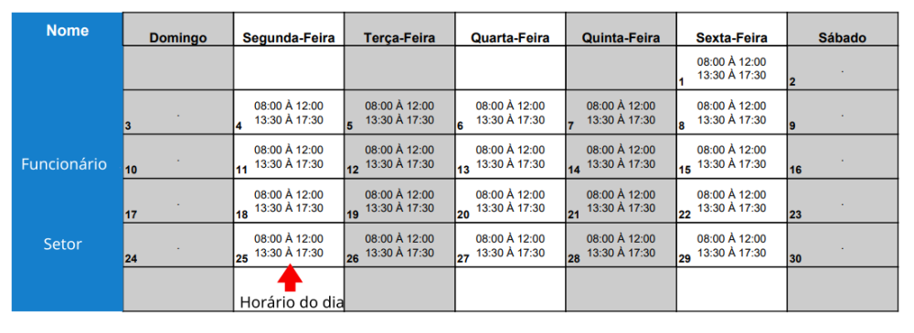 O intuito deste relatório é exibir o horário de trabalho do mês dos funcionários do setor selecionado.