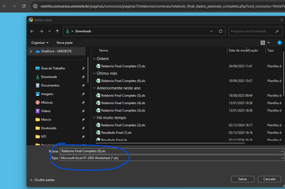 1. Acessar o sistema de concursos da COGEPS, fazer o download do relatório em Excel e salvá-lo em formato CSV;