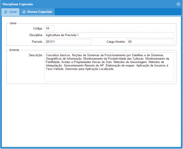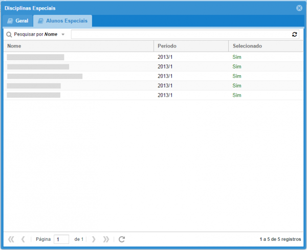 3: Na aba alunos especiais (Figura 11), na coluna Selecionado é mostrado se o aluno foi selecionado pelo docente.