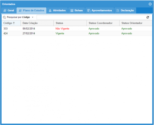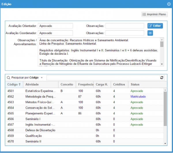 9: Ao clicar 2 vezes sobre o plano de estudos (Figura 6) é exibido detalhes do plano.