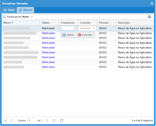5: Ao abrir a aba Alunos, são listados os alunos matriculados na disciplina.