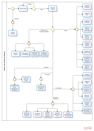 sendo que para cada perfil de usuário do sistema há funções específicas a realizar.