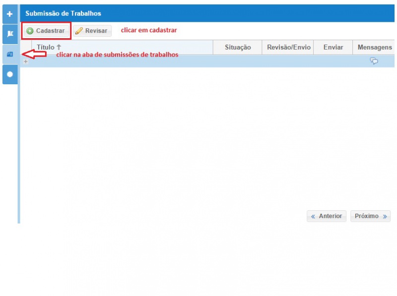 atual | 13h42min de 23 de outubro de 2015 | ![]() | 810 × 604 (45 kB) | Debora.Campelo (discussão | contribs) | Para um participante iniciar a submissão de um trabalho |