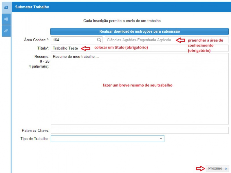 Instruções para um participante cadastrar um trabalho