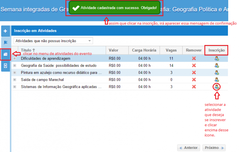 atual | 07h33min de 26 de outubro de 2015 | ![]() | 843 × 537 (57 kB) | Debora.Campelo (discussão | contribs) | Menu para inscrição de uma atividade do evento. |